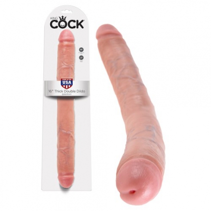 Dildos DuplosGostaria que o seu dildo tivesse a aparência e o toque de um pénis real, o pénis que sempre sonhou? Pare de sonhar e descubra o Dildo Duplo Realístico Thick King Cock 16' - 40.6 cm Branco !!!