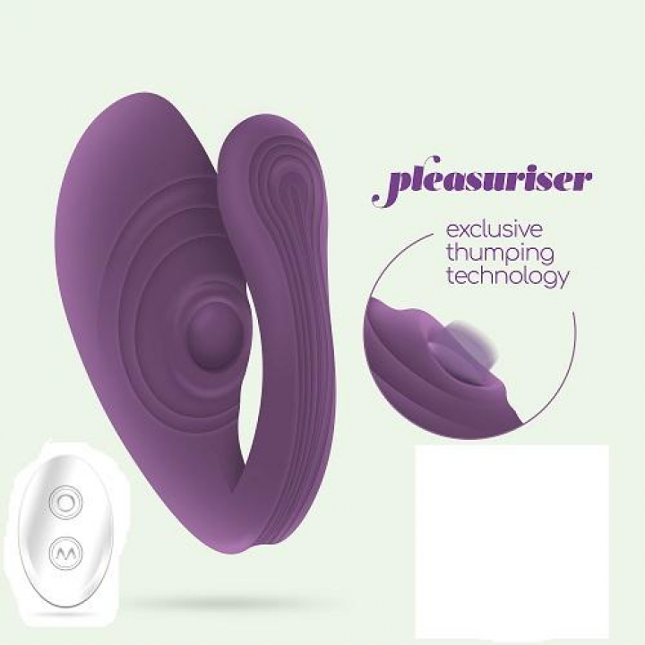 Aumente a dinâmica de casal com este vibrador em forma de C com um controlo remoto sem fios, com alcance até 15 metros. O Pleasuriser possui dois motores independentes, que podem ser controlados através do botão, ou através do controlo remoto.