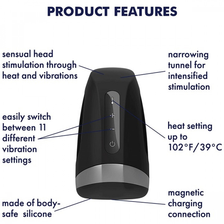 Este masturbador vibratório para o homem moderno vem equipado com uma função de aquecimento inovadora, tornando os momentos de prazer a sós numa experiência estonteante e realista. Desfruta do calor aconchegante deste túnel do amor muito acolhedor e deixa-te levar a orgasmos explosivos, com temperaturas até 40 graus.