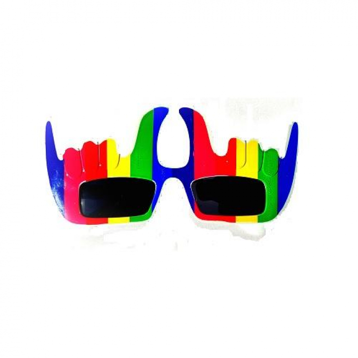 Óculos de Sol com forma de mãos com as cores emblemáticas da Bandeira LGBTQIA+