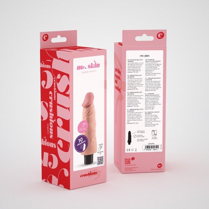 O Vibrador Realístico Crushious Mr. Skin é um cavalheiro na arte da penetração. A sua pronunciada glande vai estimular e distribuir as vibrações de forma a que as sinta uniformemente no seu interior...