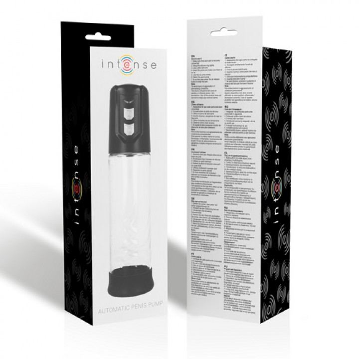 Intense Pump Automática ajuda a obter uma ereção mais facilmente, usando um sistema de vácuo que concentra o sangue no pênis quando ele ainda está flácido. A ereção é conseguida e mantida por meio de uma vedação confortável e hermética na base do pénis, justamente na junção do pênis com o púbis, graças à qual o sangue é retido no tronco. Graças à manga, a vedação é firme, confortável e estanque sem apertar.