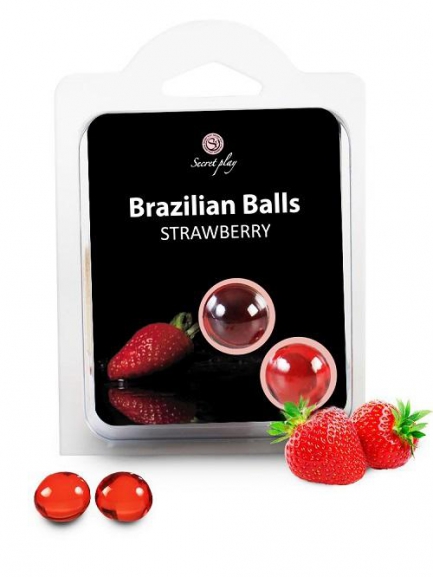 Lubrificantes Comestíveis , Lubrificante+Massagem , Brazilian Balls - Bolinhas ExplosivasBrazilian Balls Morango são um conjunto de duas bolinhas recheadas com um lubrificante aromatizado.